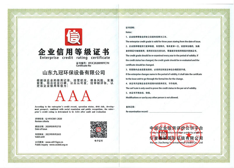企業信用等級證書